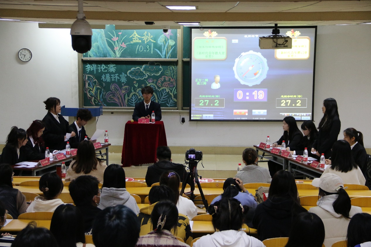 10月31日在第一轮比赛中,海洋与环境学院对阵经管学院。本场辩论赛辩题为:新时代青年胜人更重要还是胜己更重要。辩论开始,双方立论陈词。我方一辩紧扣当下热点和现实实际,从时代所需的人才类型对辩题进行分析表明了“新时代的青年胜人更重要”的观点。在攻辩环节,面对对方辩友激昂的话语,我方旁征博引,凭借出色的口才,灵敏的思维和缜密的逻辑关系赢得阵阵喝彩。到了最精彩的自由辩论环节,我方从时代需求,自身使命,人生目标等方面论述,利用数据增强说服力。场上唇枪舌战,双方辩手妙语连珠,现场的气氛愈加热烈,精彩的答辩不断出现。在总结陈词阶段,我方四辩从时代趋势,未来目标需要不断进取,才能在每个领域有所突破,推动历史车轮滚滚向前。我方辩手清晰的思路和巧妙的陈词给观众留下深刻印象,最终获得第一轮胜利。