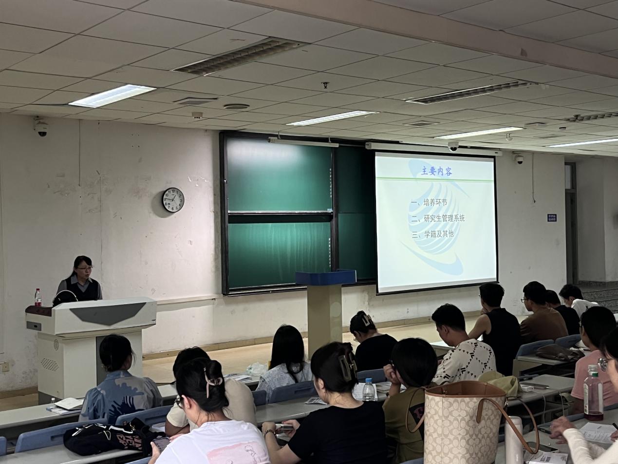 为向2023级研究生新生全面介绍本学院研究生培养目标和培养模式,所学专业、学科建设及发展现状及研究生教育和培养要求,督促学生尽快制定个人培养计划。9月7日,海洋与环境学院在滨海中校区9-3阶教室开展2023级研究生入学教育之学科专业和科学道德教育,研究生教学秘书马玉兰老师主讲,研究生辅导员李婷申老师、袁菲老师及全体2023级研究生新生参加。