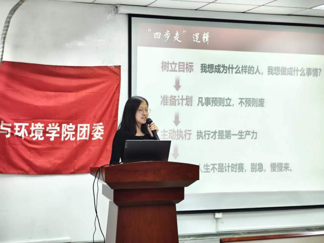 为深入学习贯彻习近平新时代中国特色社会主义思想,加快推进高质量内涵发展,充分发挥榜样引领作用,促进学院优良学风建设,2024年4月17日,海洋与环境学院于滨海校区中院图书馆9-506开展“榜样引领”第八期“思想引领”讲座。本次宣讲邀请到了学校宣讲团成员2020级文法学院高天乐、2020级轻工学院张诗雅讲述个人优秀事迹。
