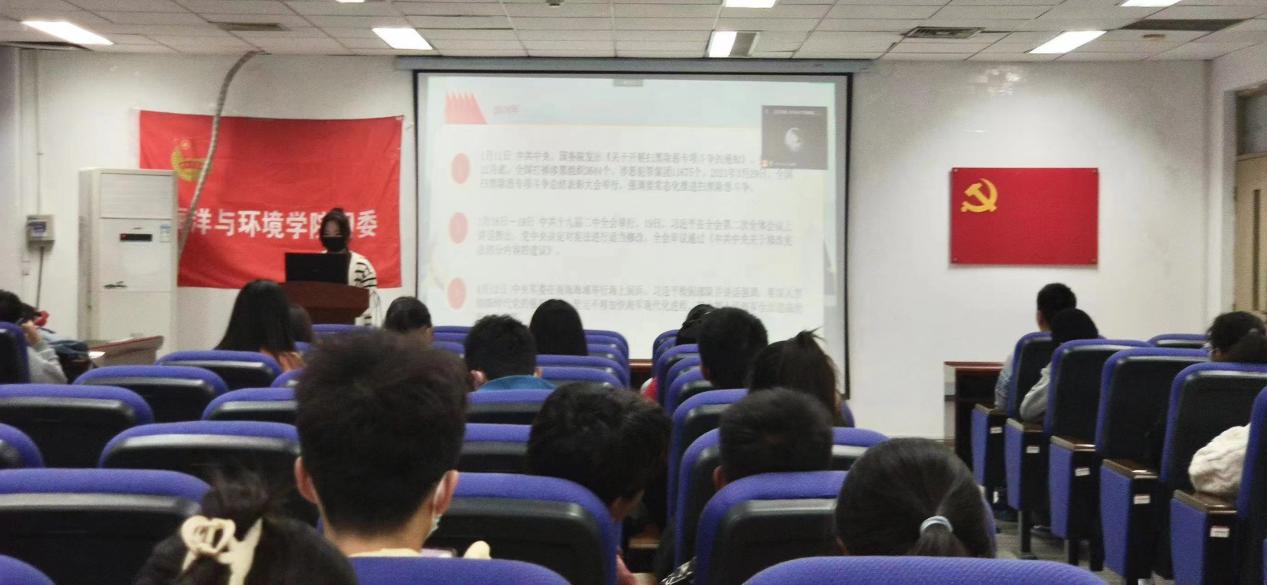 近日,为了积极引导学院广大团员青年认真学习宣传贯彻党的二十大精神,海洋与环境学院团委组织全体团支部书记开展专题学习活动,学院团委副书记曹颖主持学习活动,2020级团支部书记赵青雨同学受邀进行学习分享。